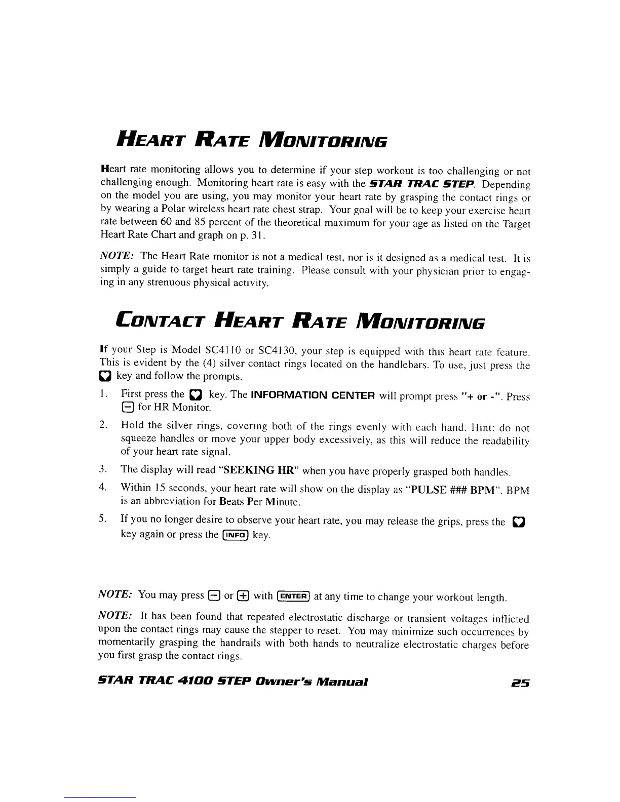 Star Trac SC4100 - Heart Rate Monitoring