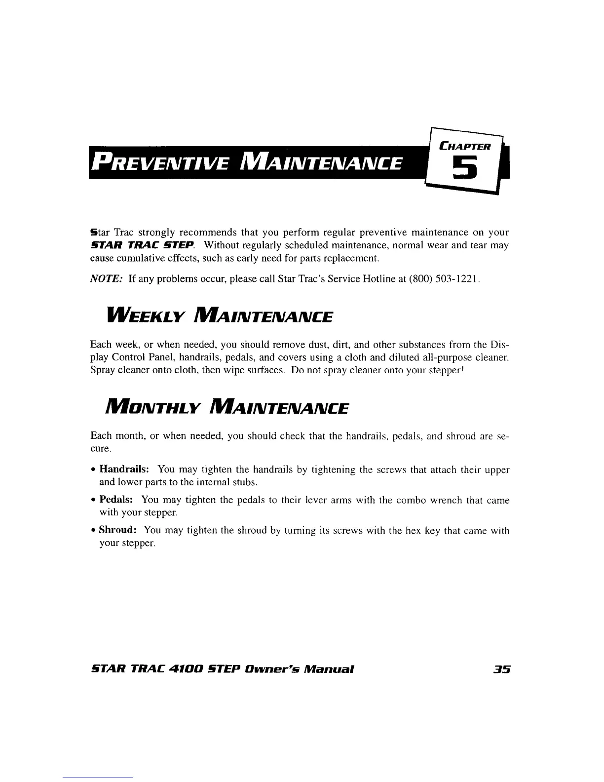 Star Trac SC4100 - Preventive Maintenance; Weekly Maintenance; Monthly Maintenance