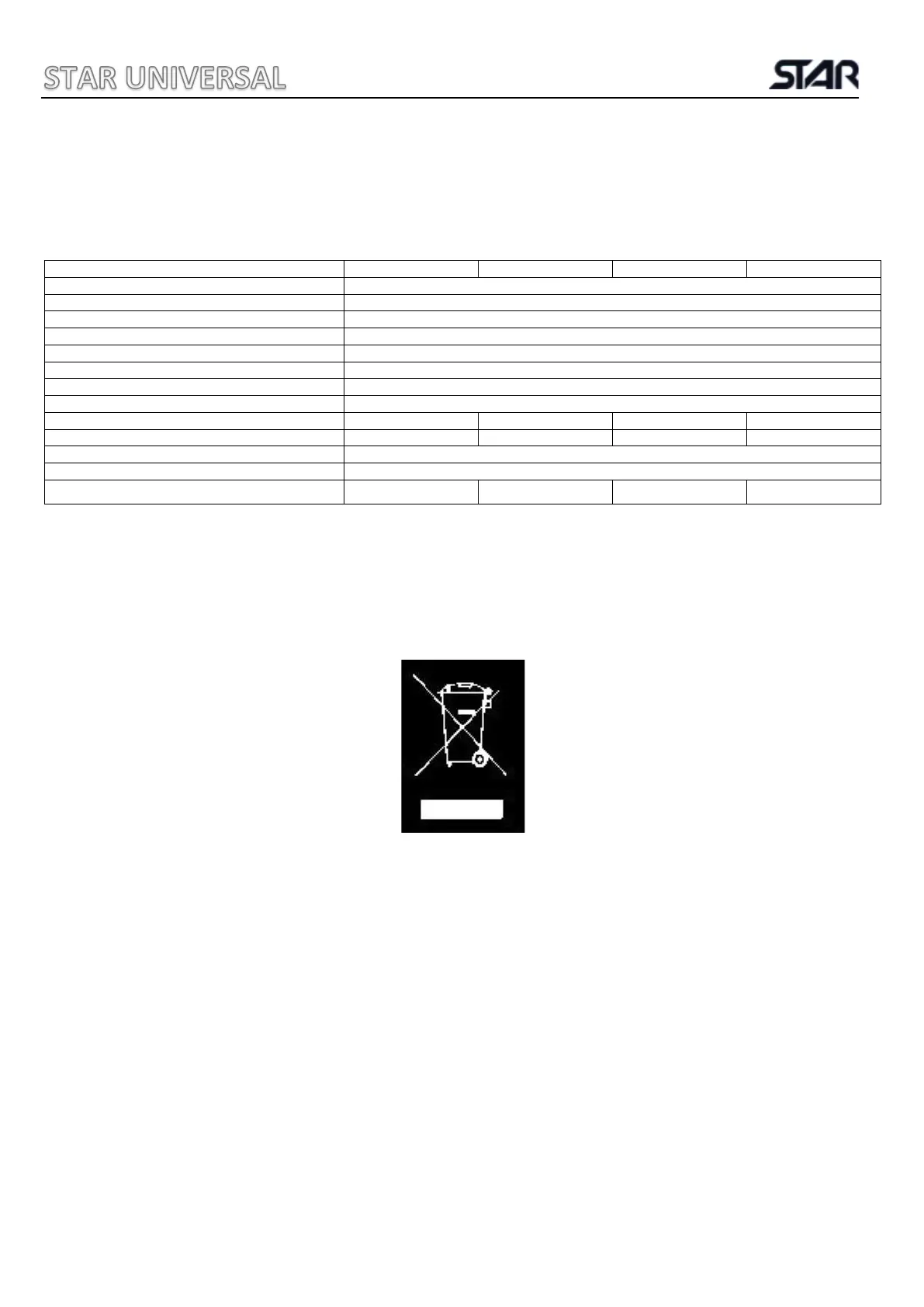 Star Universal reserves the right to change the above specifications without prior notice.