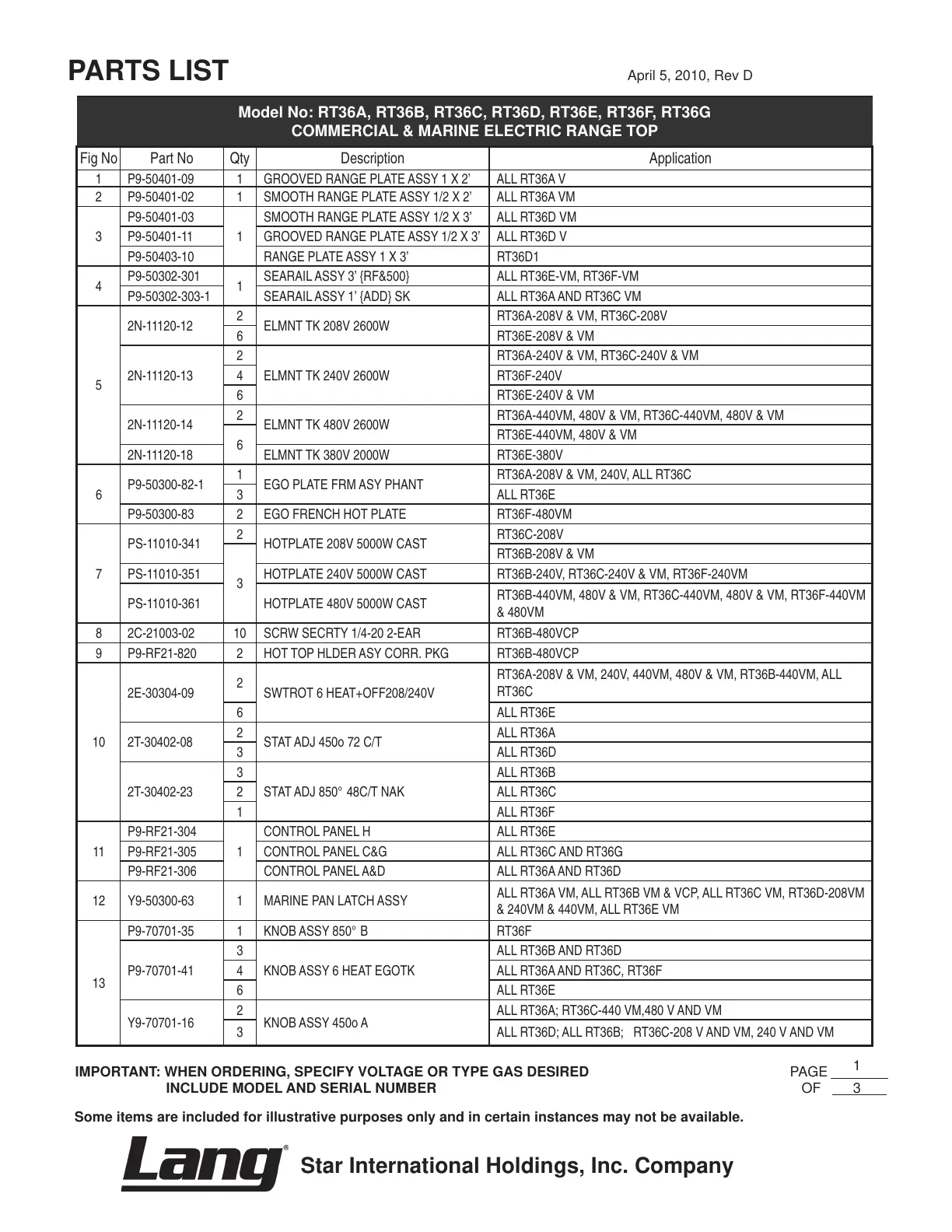 IMPORTANT: WHEN ORDERING, SPECIFY VOLTAGE OR TYPE GAS DESIRED PAGE