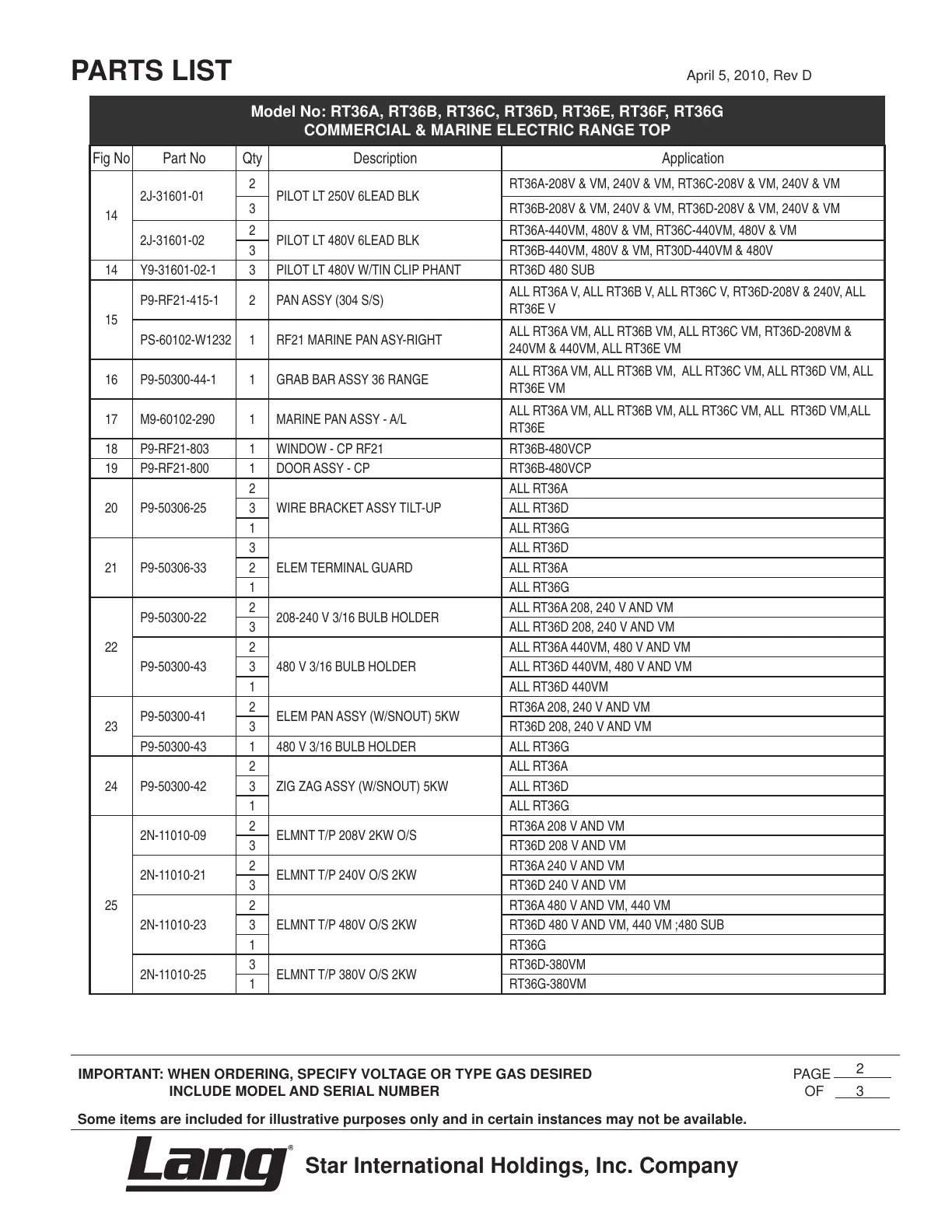 IMPORTANT: WHEN ORDERING, SPECIFY VOLTAGE OR TYPE GAS DESIRED PAGE