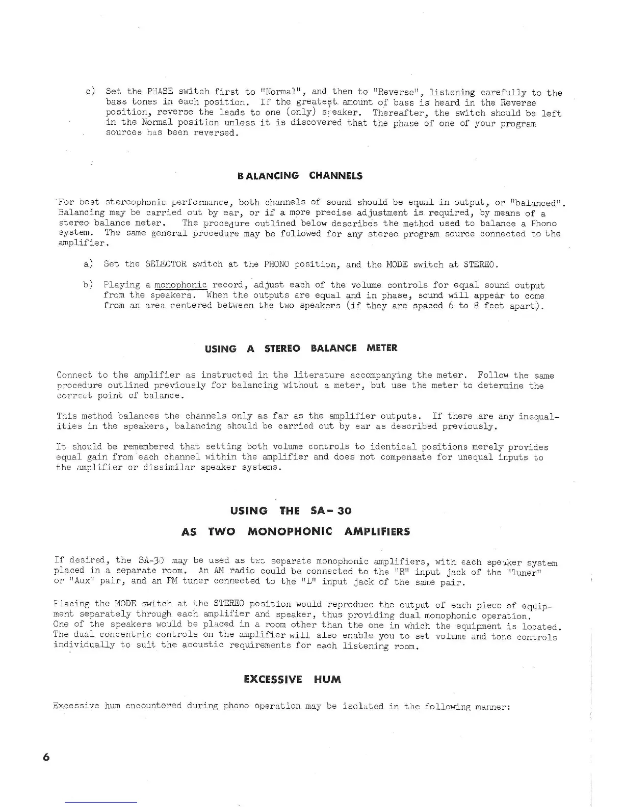 Star SA-30 - Advanced Configurations; Channel Balancing; Dual Monophonic Mode; Troubleshooting Guide