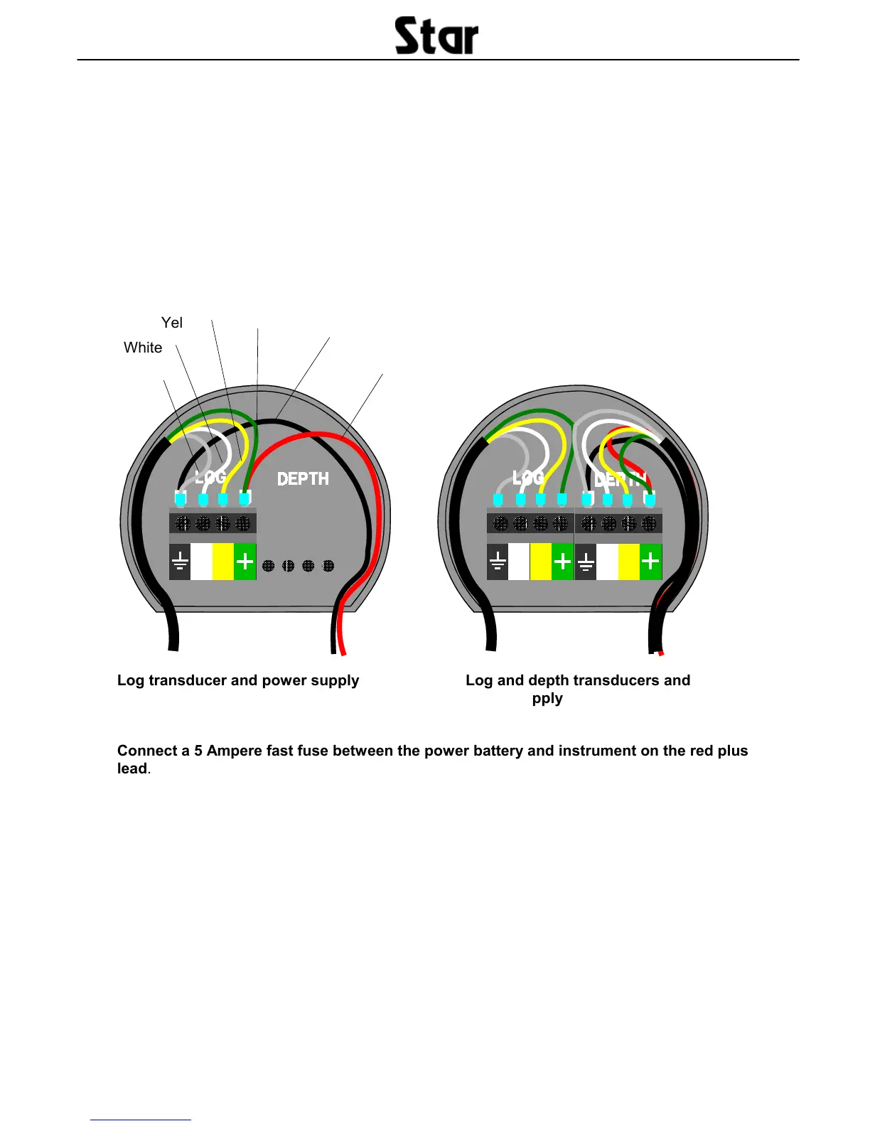 white and ground sign. Connect the four wires from the log transducer according to the colours