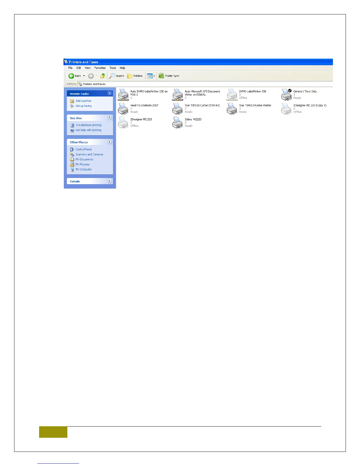 4. Open Printer and Faxes. Go to Start>Control Panel>Printer and Faxes and confirm you see the