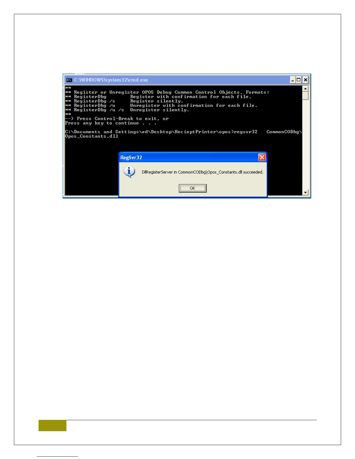 4. A number of successes prompt will appear to confirm the registration of the OPOS components.