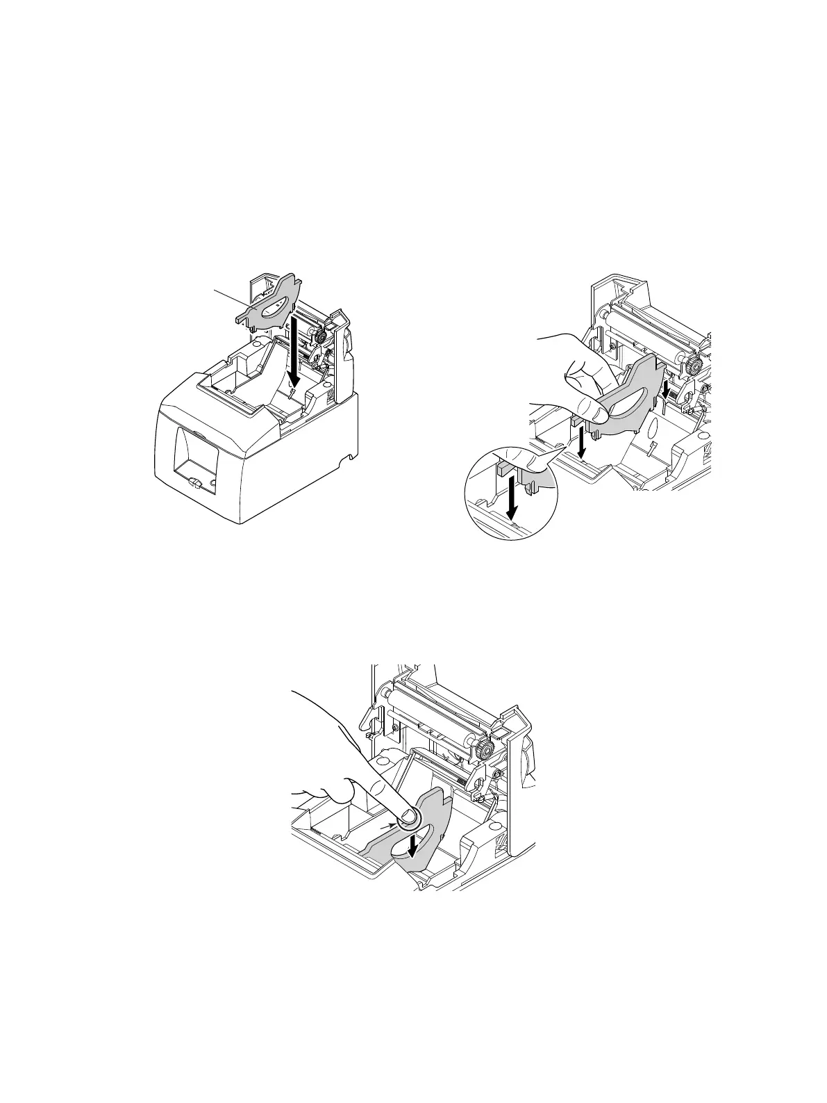 When using a paper roll with 57.5 mm width, install the supplied paper guide on the printer.