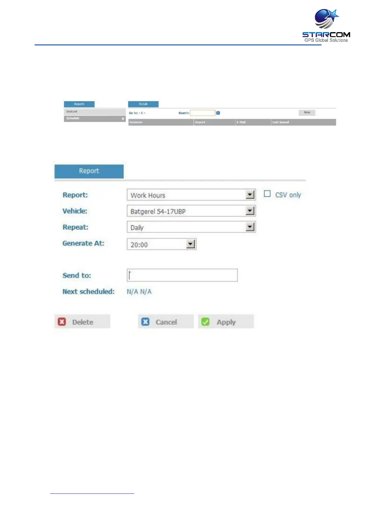 Click New. The Report Scheduling page opens.