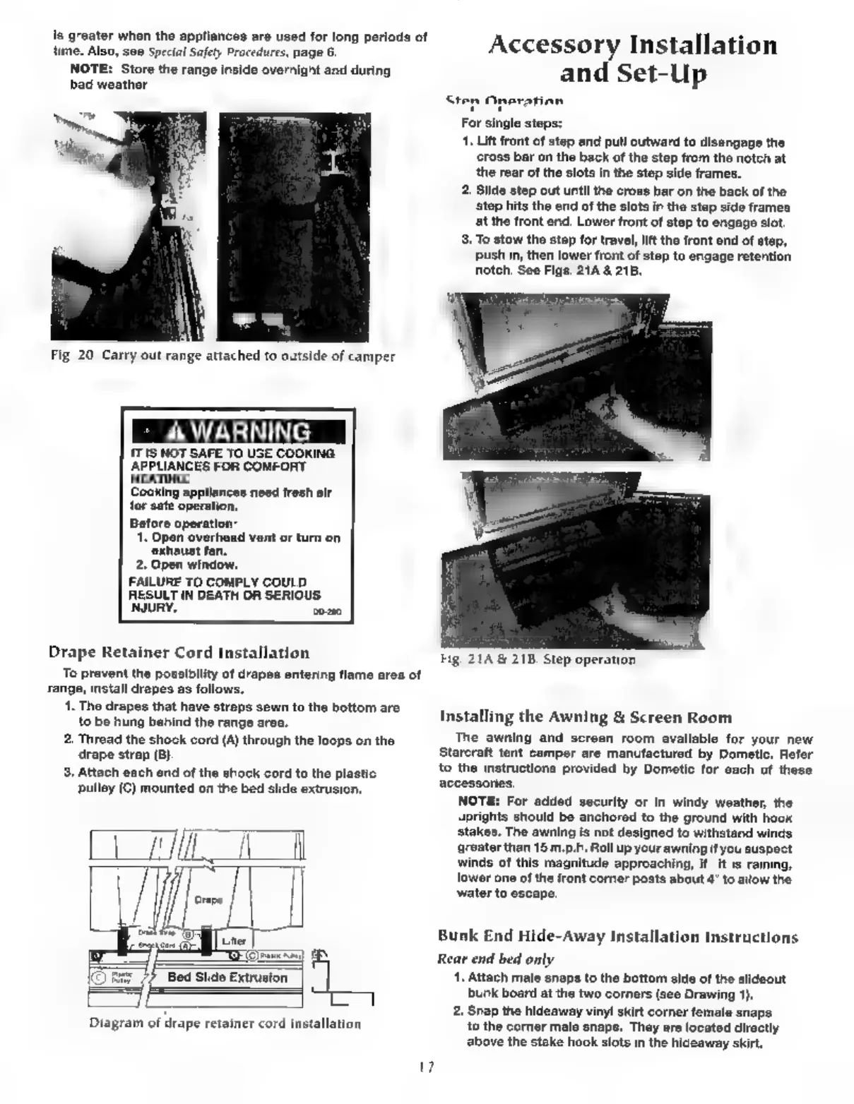 Starcraft 2005 - Accessory Installation and Set-Up; Step Operation and Adjustment; Drape Retainer Cord and Awning Installation; Bunk End Hide-Away Installation