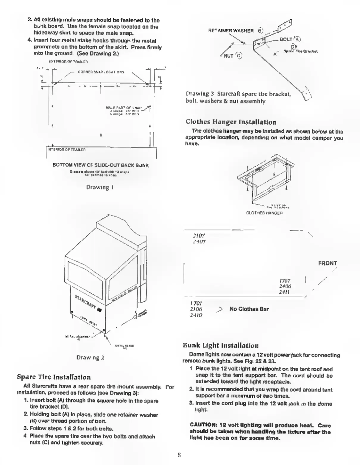 Starcraft 2005 - Installation of Spare Tire, Clothes Hanger, and Bunk Lights; Spare Tire Installation; Clothes Hanger Installation; Bunk Light Installation