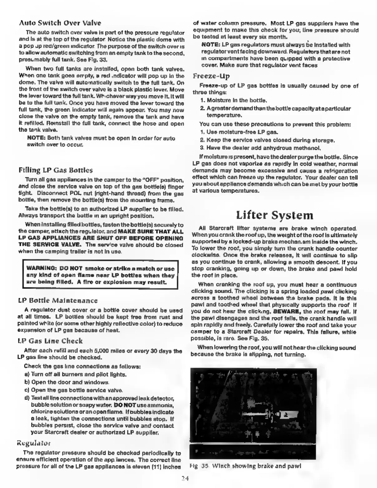 Starcraft 2005 - LP Gas System Operation and Lifter System; LP Gas System Controls and Filling; LP System Maintenance and Freeze-Up Prevention; Lifter System Operation and Safety