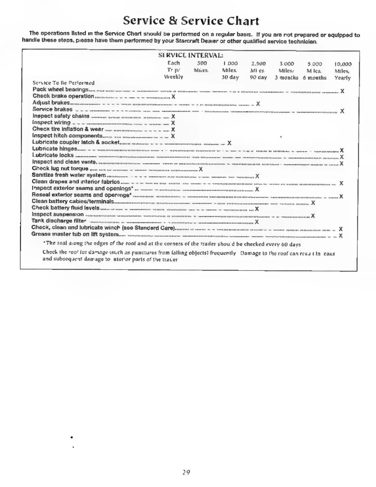 Starcraft 2005 - Service and Maintenance Schedule; Regular Service Operations
