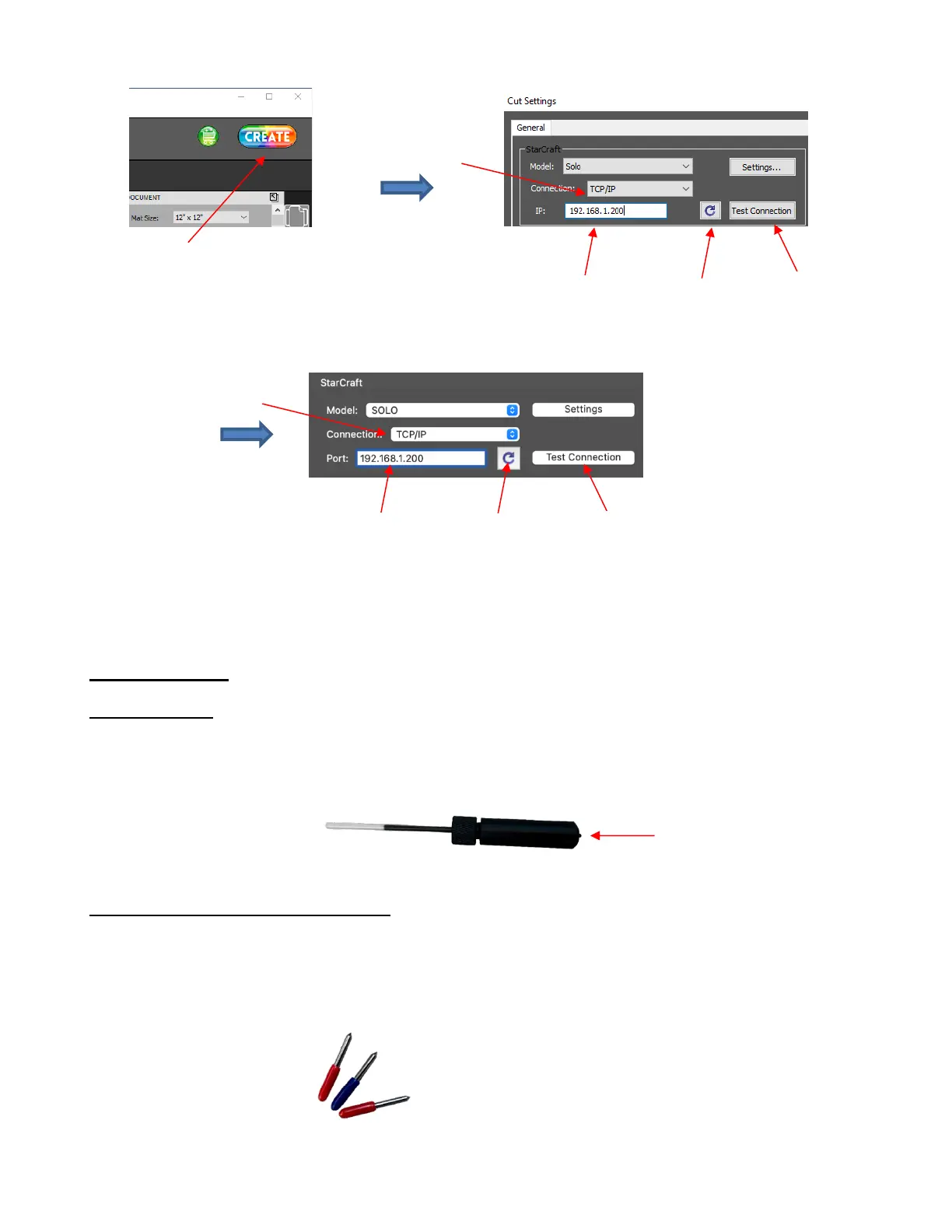 • If the SOLO is successfully connected to your computer, pressing Test Conection will cause the cutting