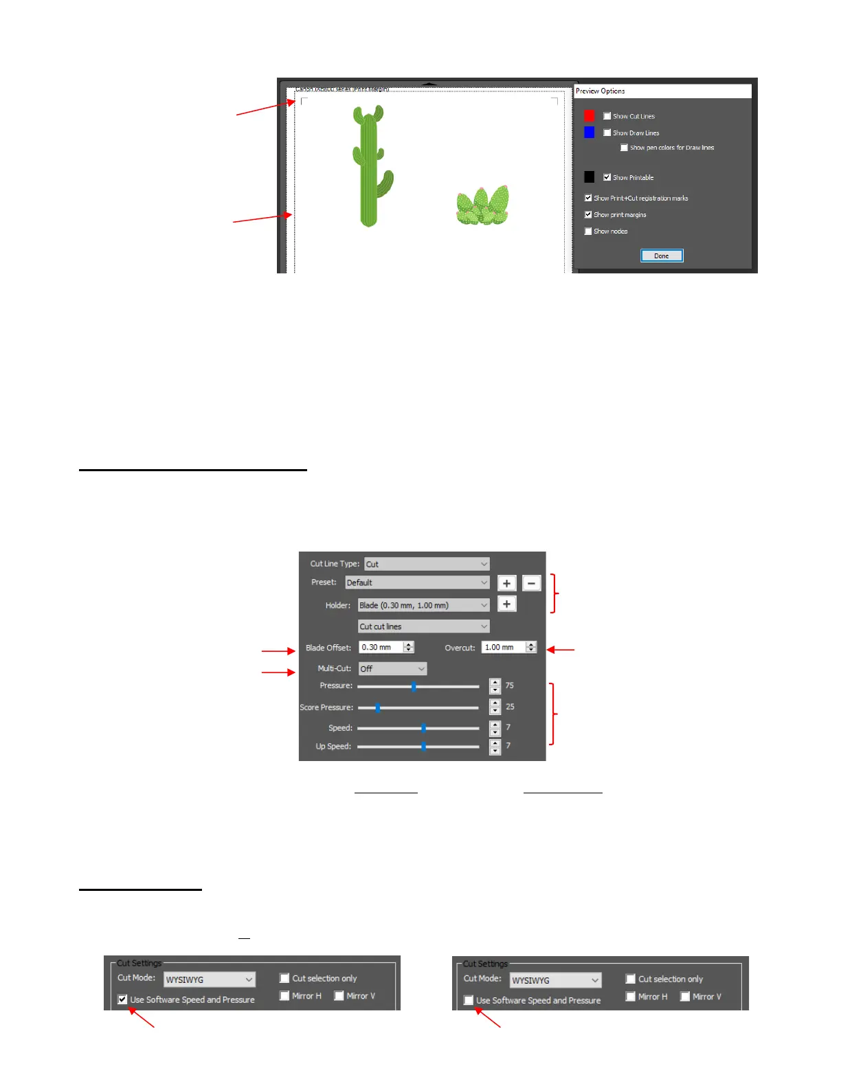 • NOTE: If you mark the option for Show Print+Cut registration marks and they do not appear: