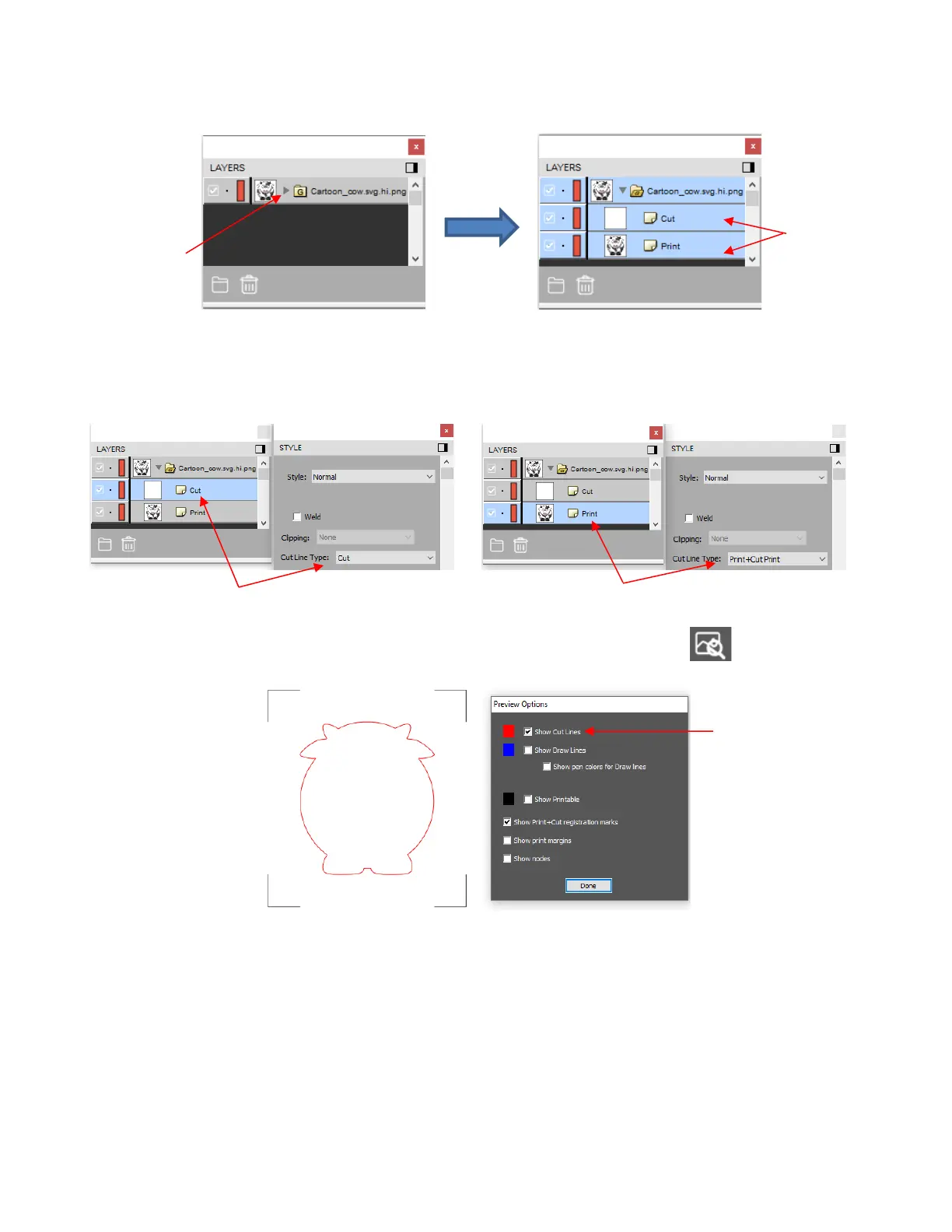 (5) To verify that Cut line is, indeed, following the printed image click the Preview icon on the Toolbar: