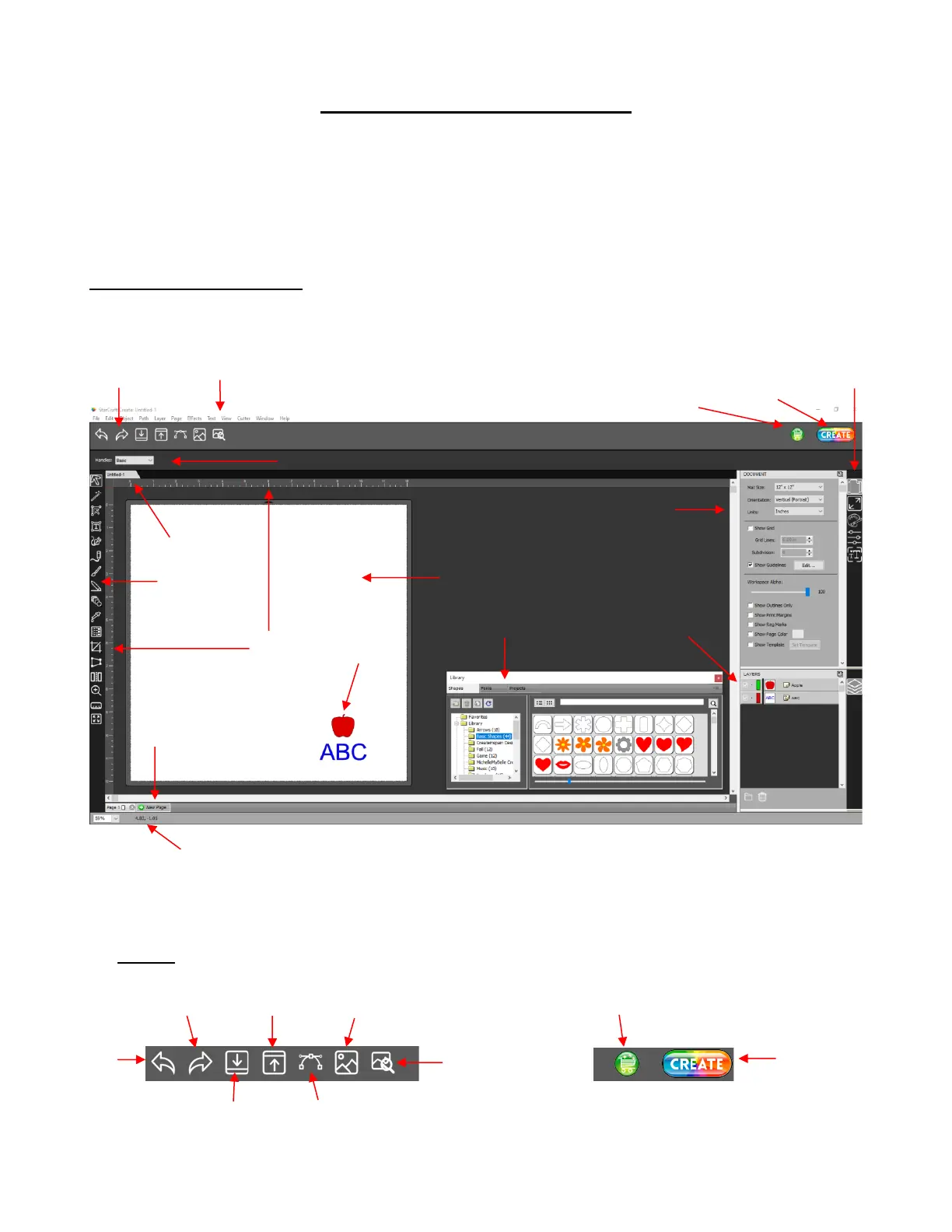 • Below is a screen shot of the main screen in CREATE identifying various elements.