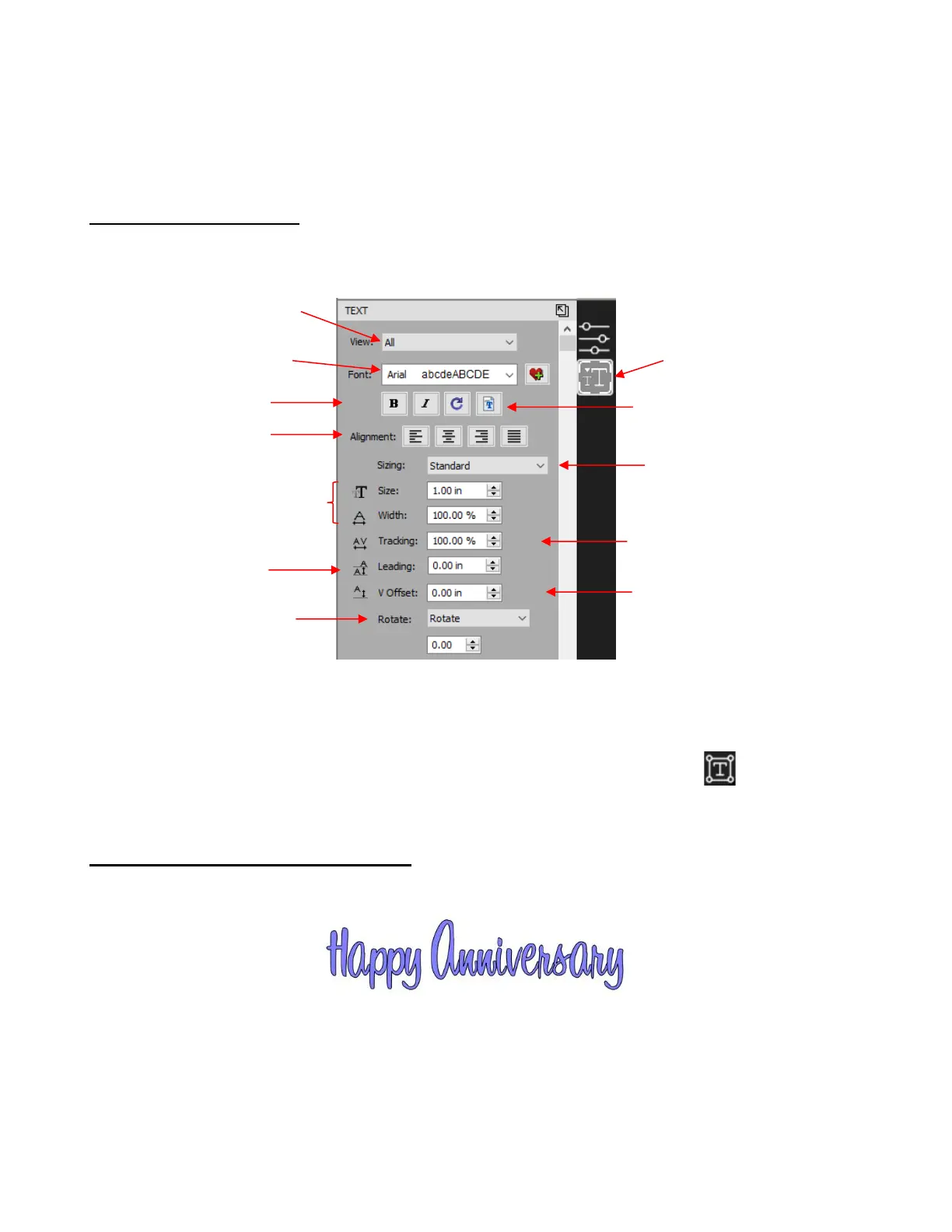 • The Text Panel offers an array of settings related to the creation and editing of text. To open, click on the