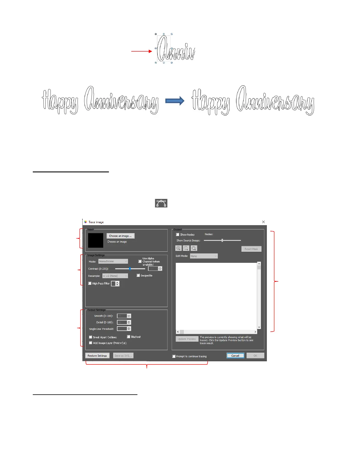 • On the Toolbar, click the Trace Image icon to open the Trace Image window:
