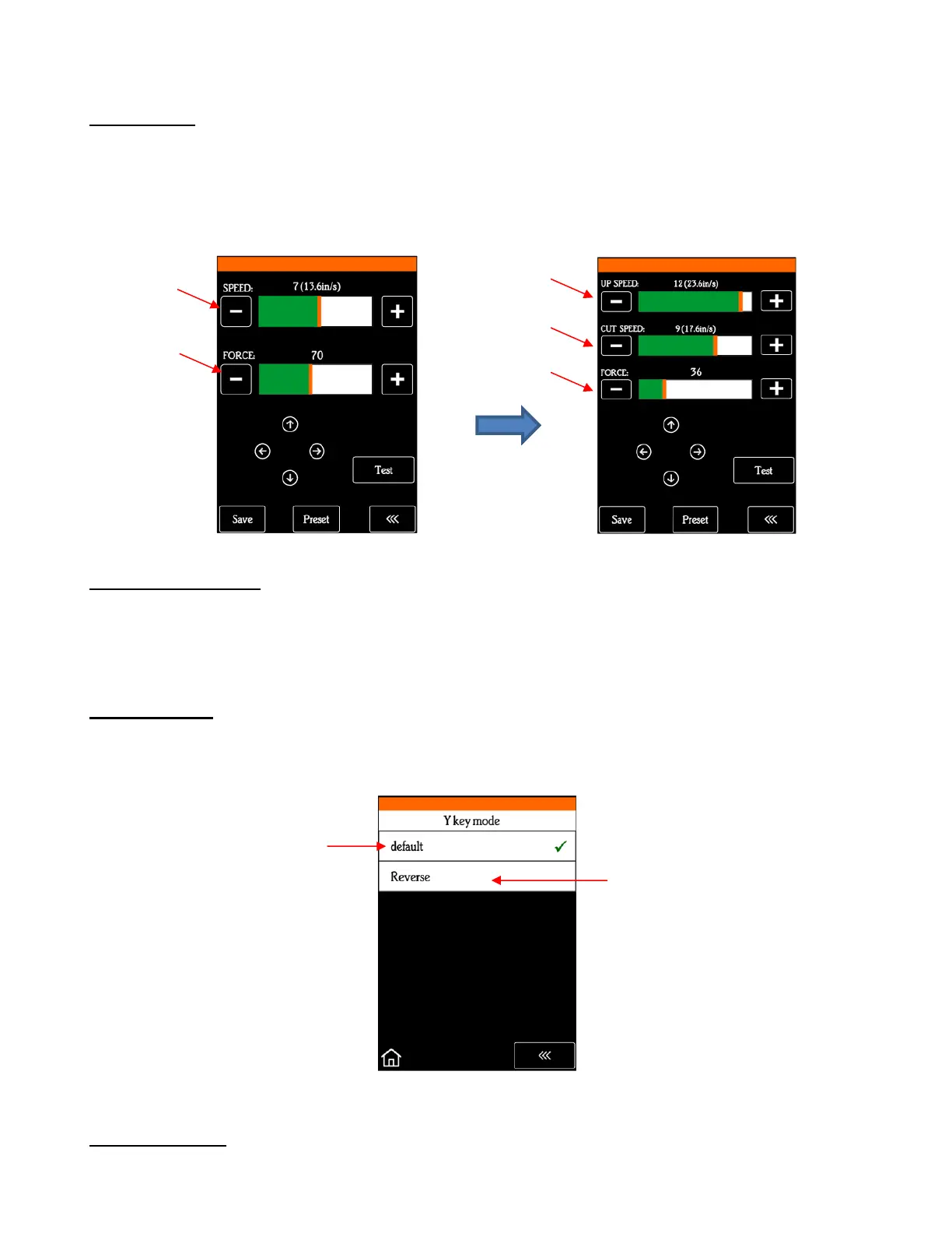 • Up Speed is how fast the blade travels while in the “up” position, such as when it is moving from the origin