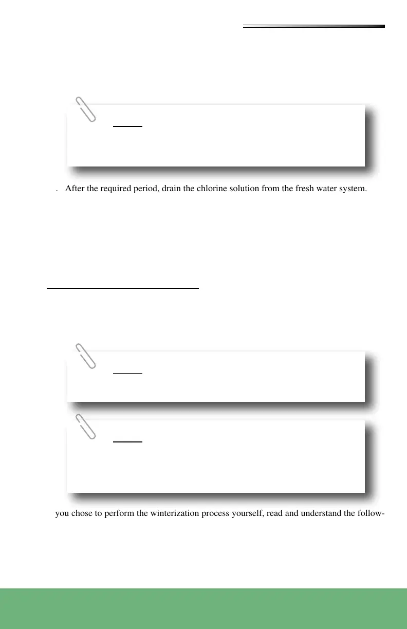 12. After the required period, drain the chlorine solution from the fresh water system.
