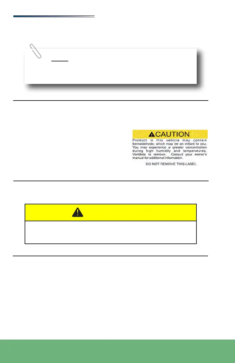 Some components in the recreation vehicle contain formaldehyde-based adhesives that may