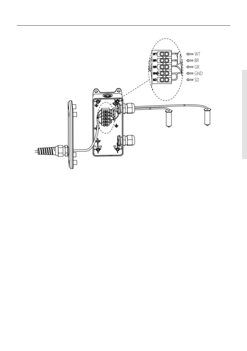 Upozornění: Pokud je připojovací krabice nainstalována na bráně, ale zabezpečovací