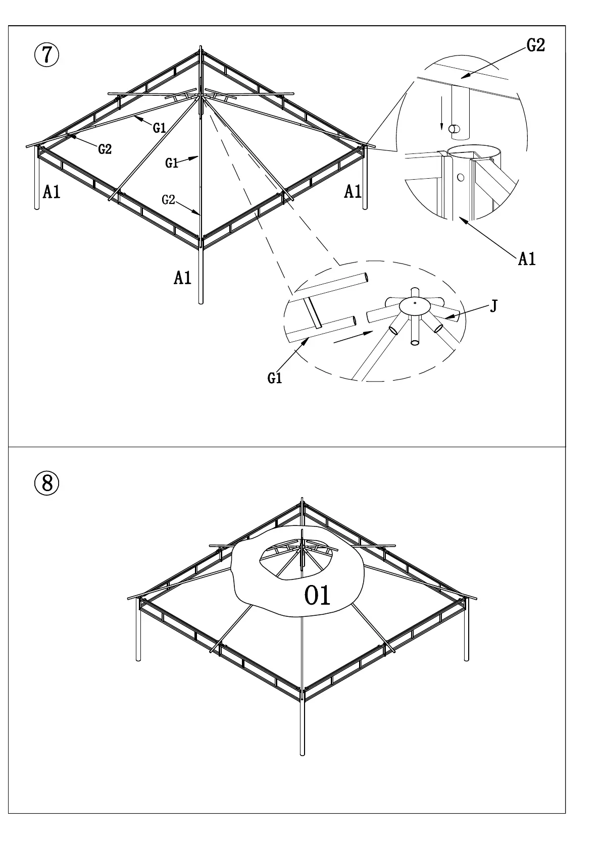Step 8: Put Big Canopy (O1) on big roof frame.