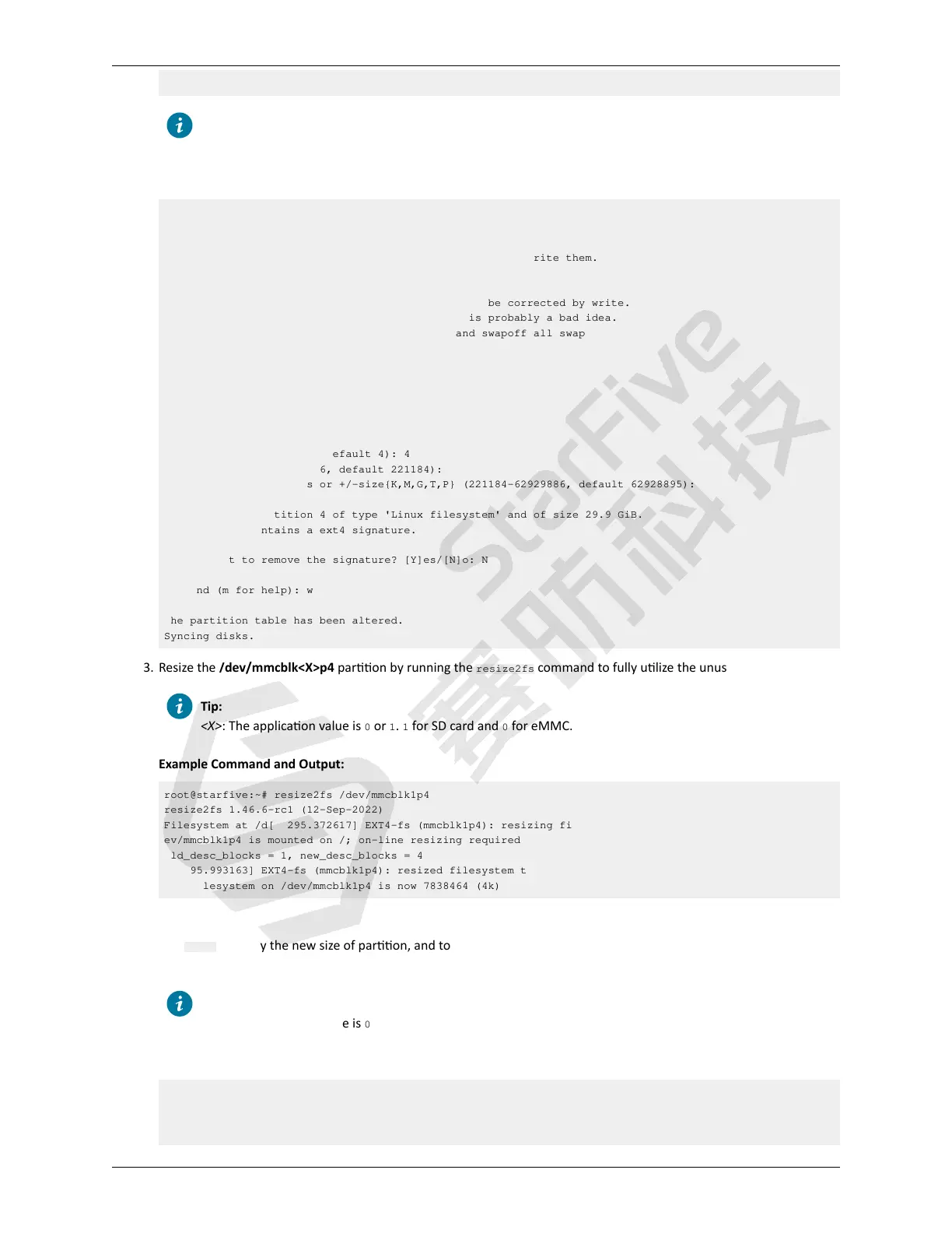 root@starfive:~# fdisk /dev/mmcblk<X>