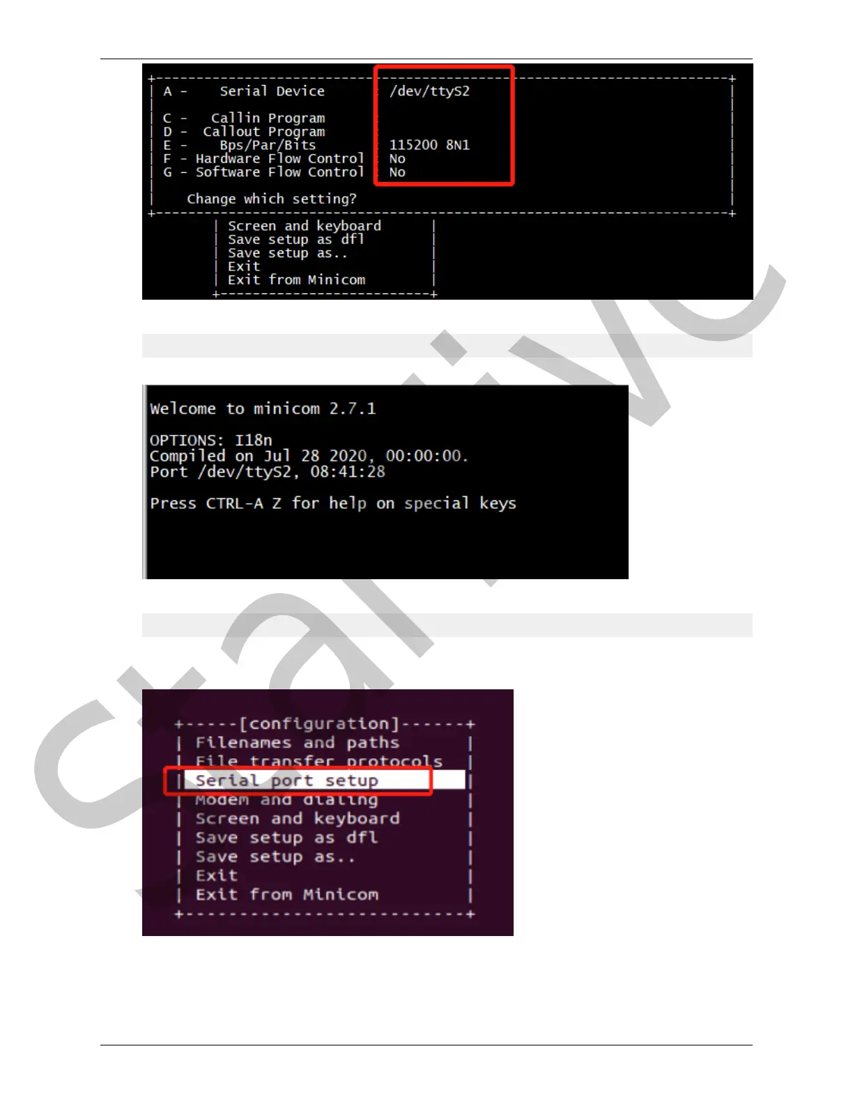 sudo minicom -s