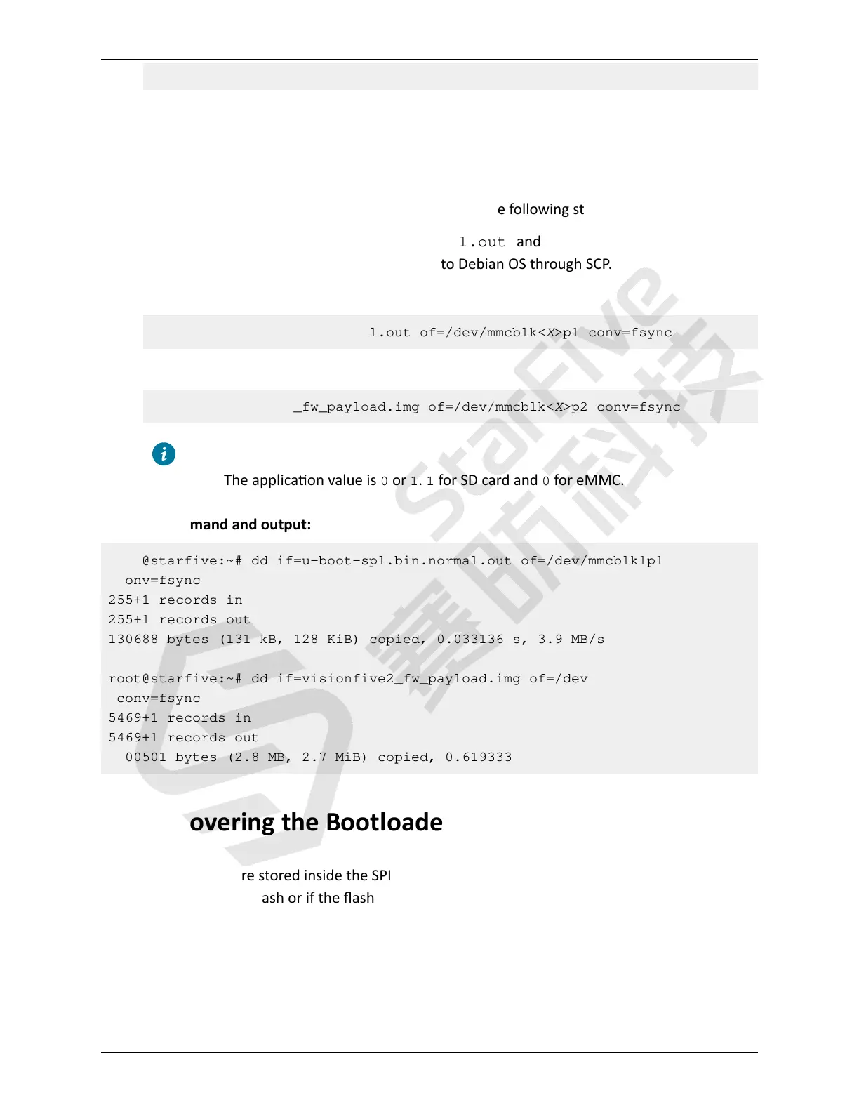 root@starfive:~# dd if=u-boot-spl.bin.normal.out of=/dev/mmcblk1p1