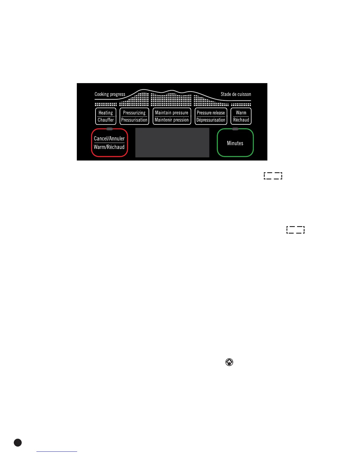 DÉPRESSURISATION : Lorsque le temps de cuisson sous pression sera écoulé, l’appareil émettra un