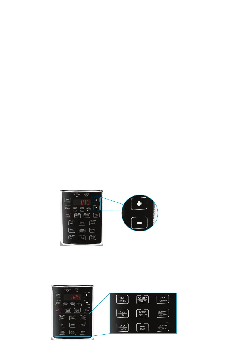pour ajuster le temps de cuisson (voir la section - | + AJUSTEMENT DE TEMPS).