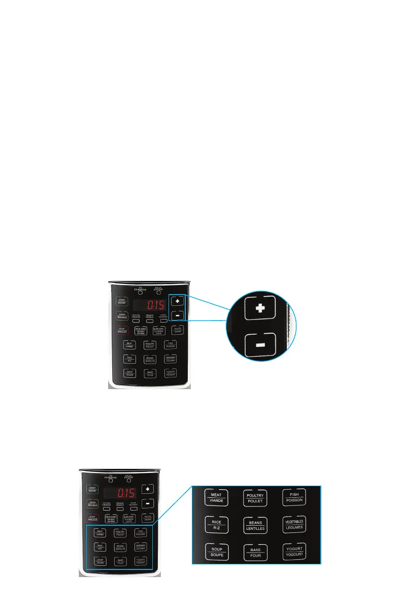 Se pueden ajustar los tiempos de cocción presionando ‘’+’’ (añadir tiempo) o ‘’-‘’ (restar