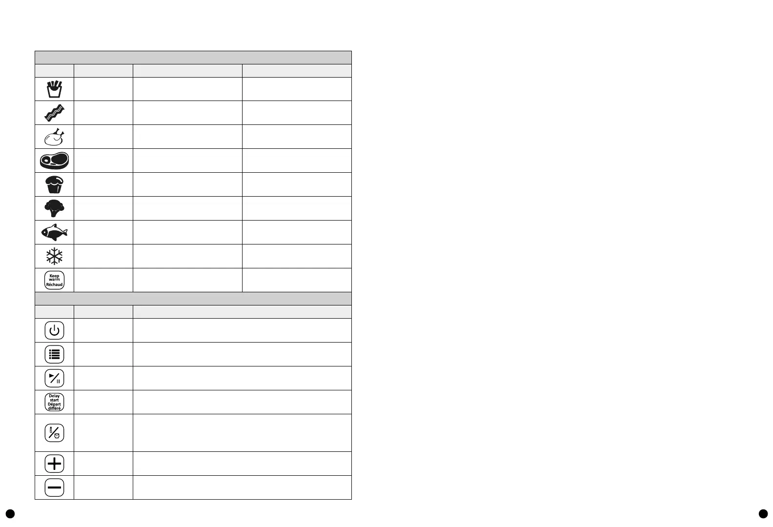 Each air fryer function is preprogrammed with preset cooking times and temperatures based
