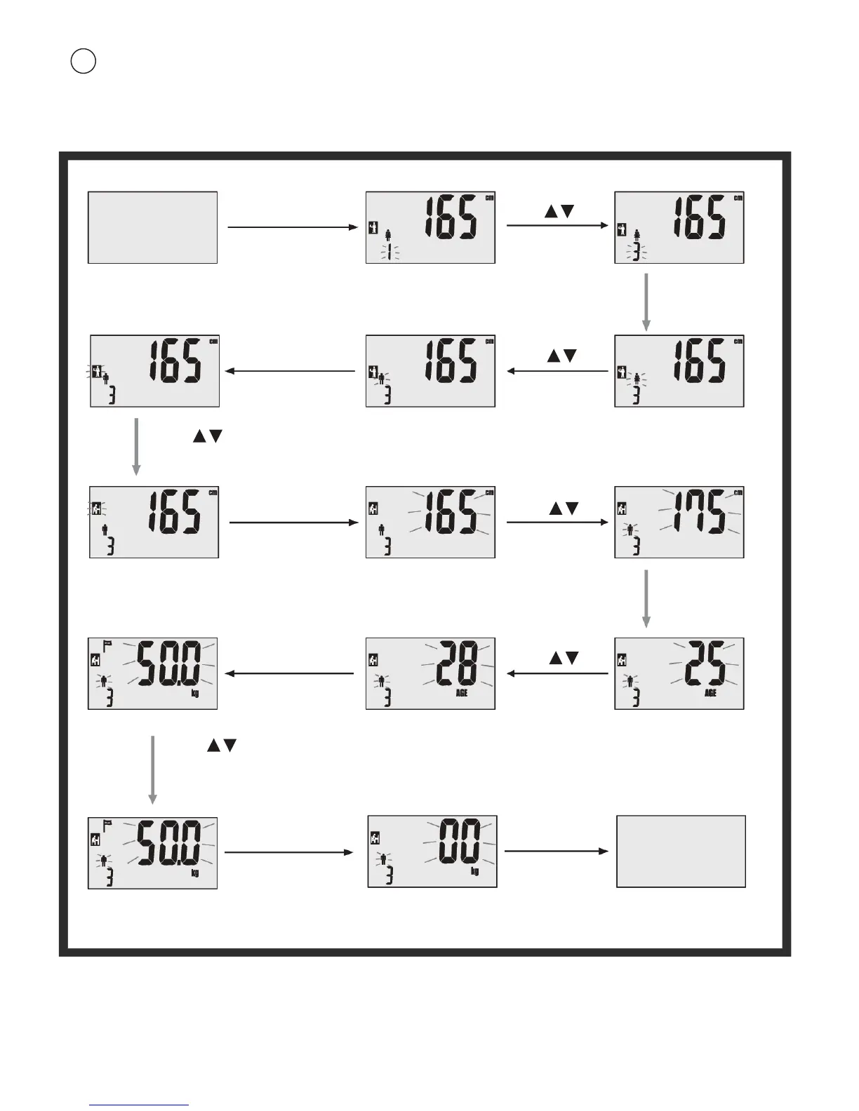 the setting mode. You will then be able to set you user code, gender, activity level, height, age and target weight again.