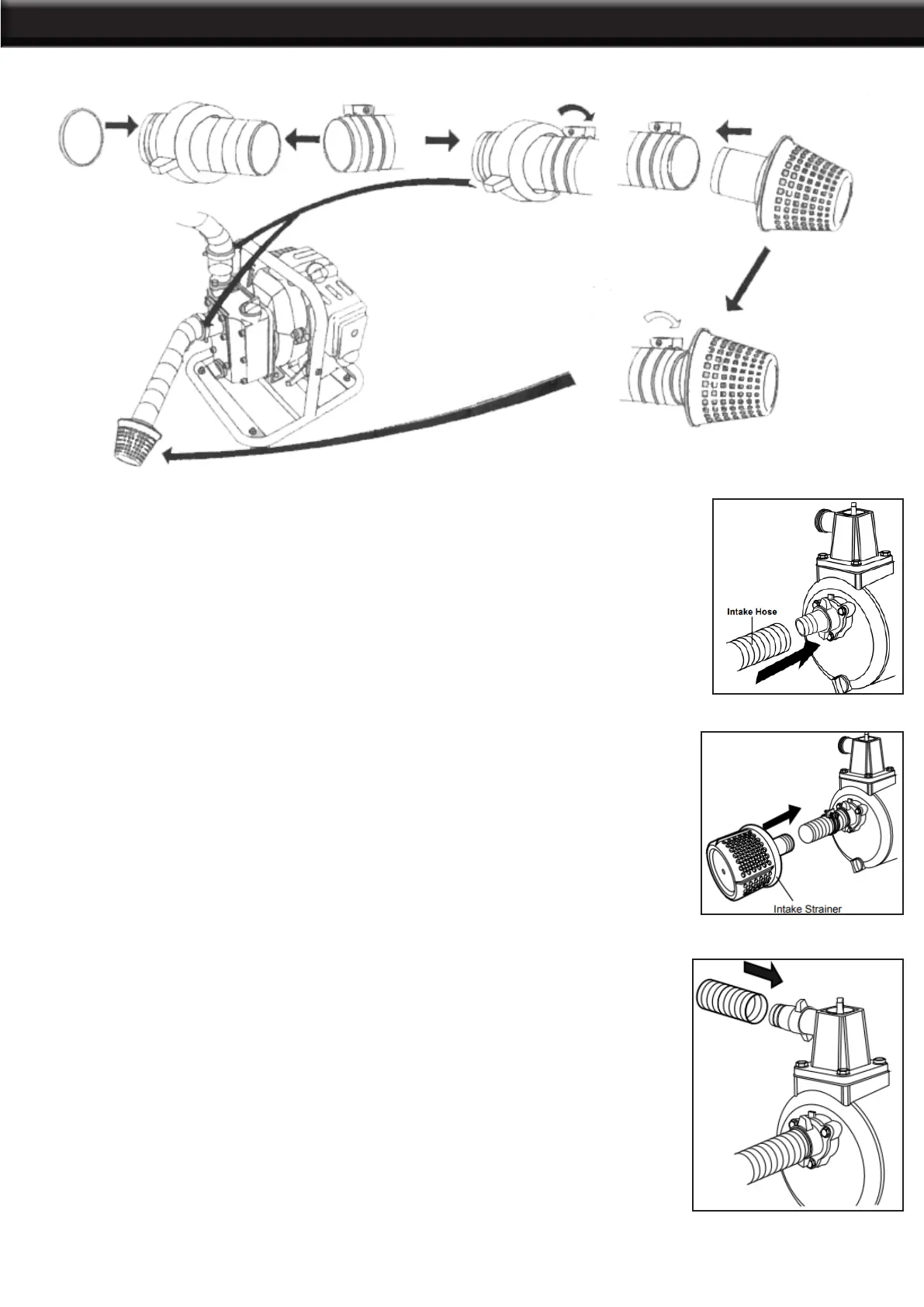 1. Thread intake hose onto Intake Port. NOTICE: Use only a non-collapsible