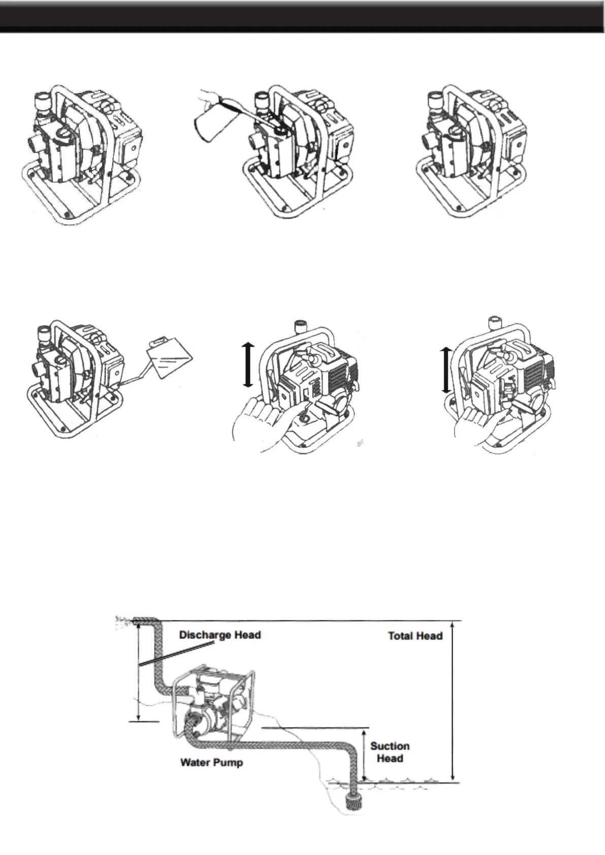 height for the Intake Hose (suction head) should be shorter than the pumping height for the Discharge Hose.