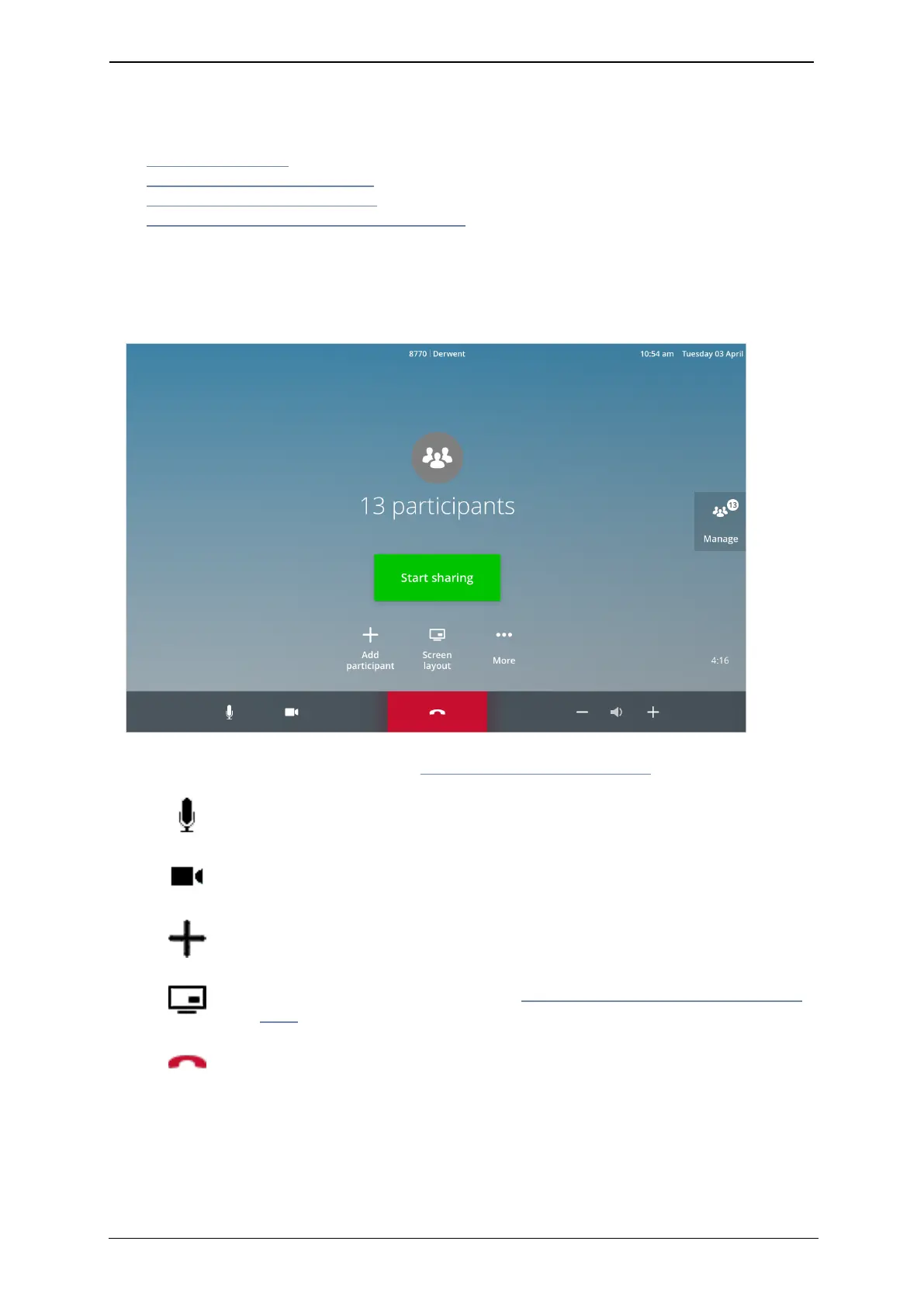 When you are in a meeting, the touchscreen shows the following controls and features: