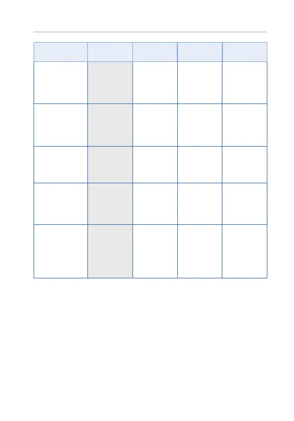 The factory settings are highlighted in gray in the table.
