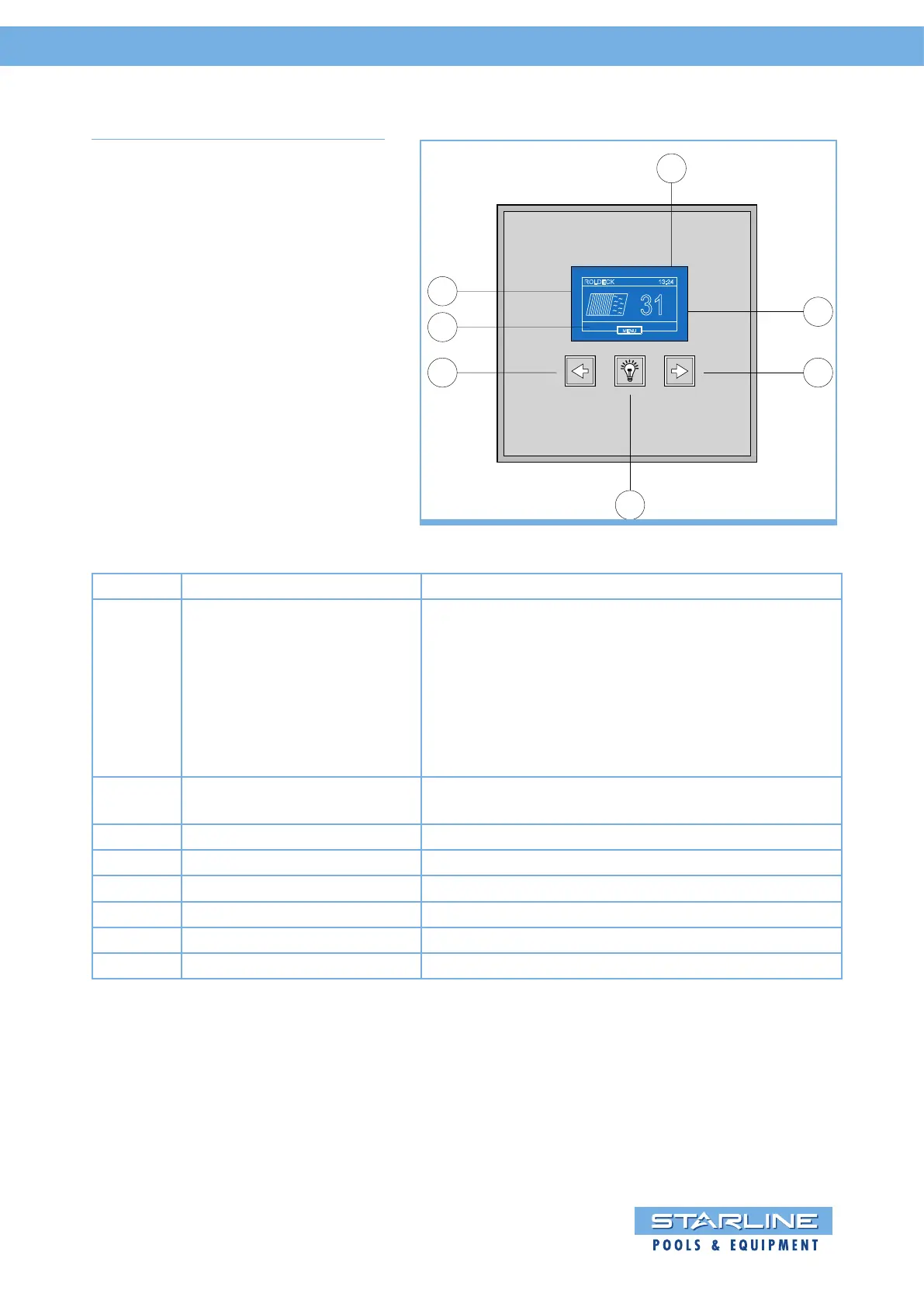 B “Open” key By pressing this key the Roldeck will roll up.