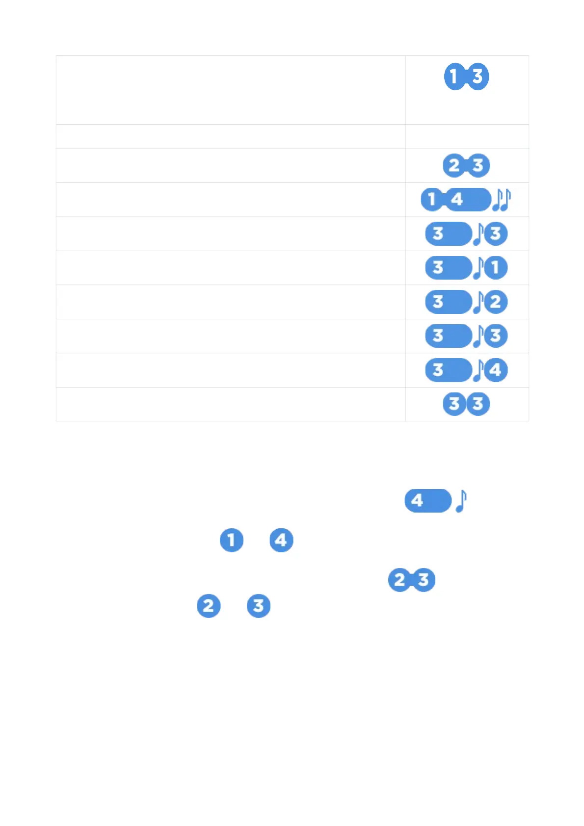 Submenu options are selected with 2 and 3 buttons short push: