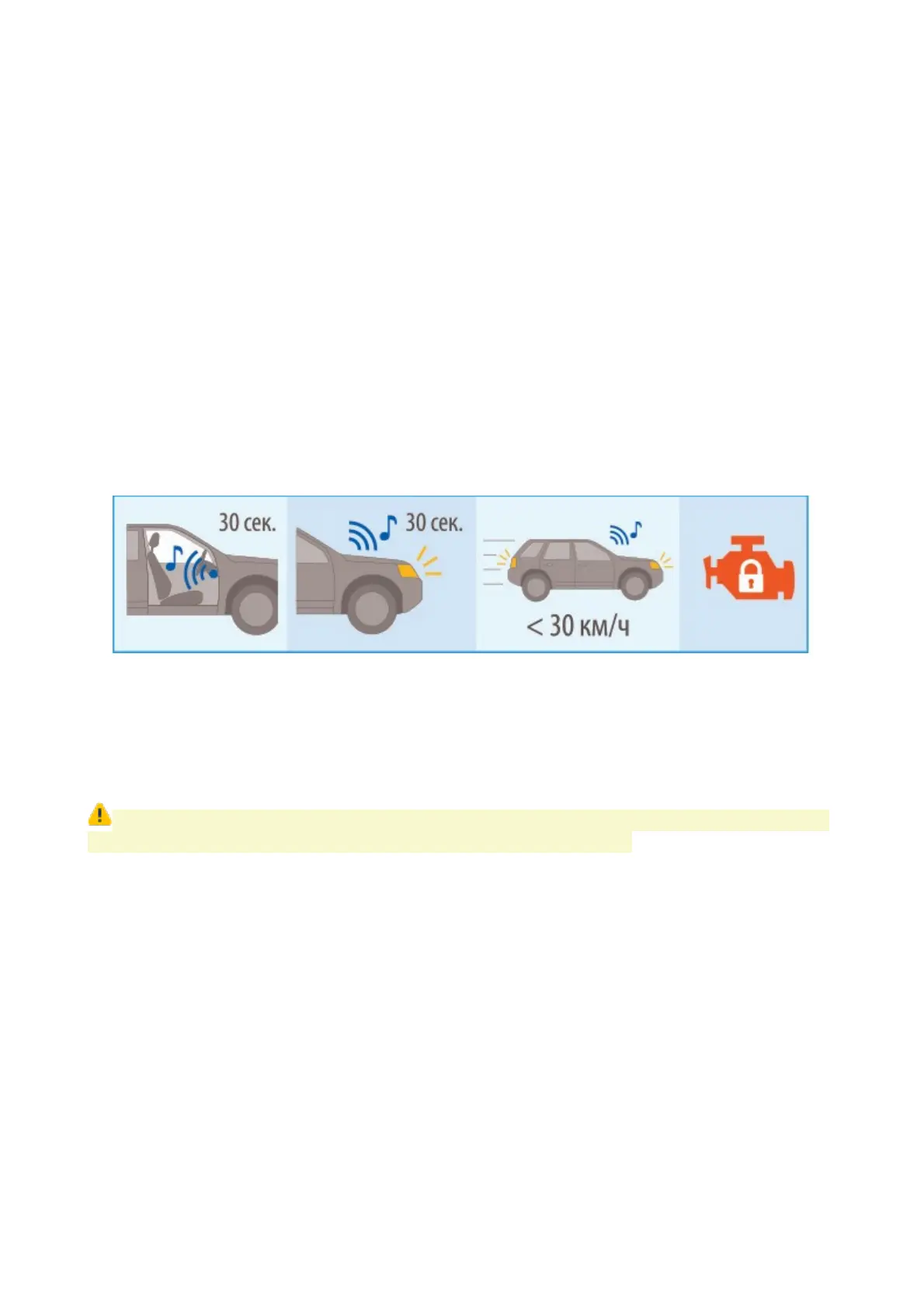 System enables warning sounds and lights on upcoming engine blocking for 10 seconds.