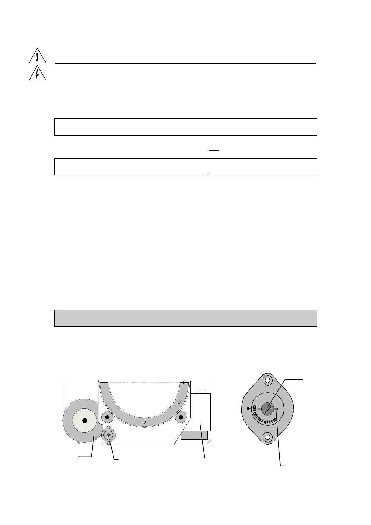 nearest lower value. E.g. Local voltage = 230 Volts. Set switch for 220 Volt selection.