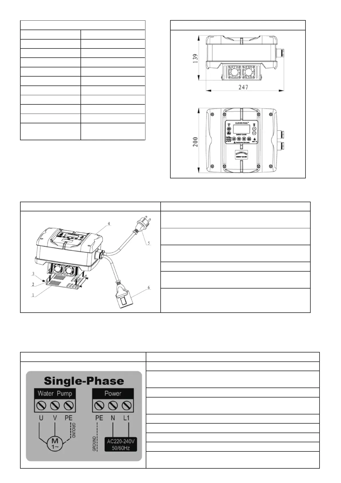 WIRE CONNECTION AND DESCRIPTION FOR 2HP AC220V SINGLE PHASE IN - SINGLE PHASE OUT