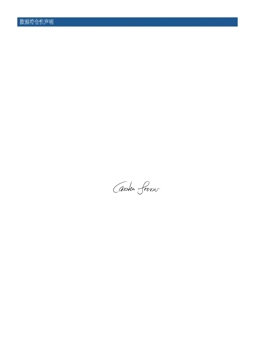我们在此声明,以下所述机器基于其设计和结构及由我们提出的技术要求符合欧盟指令的相关基础安 全和健康要求。如有未经