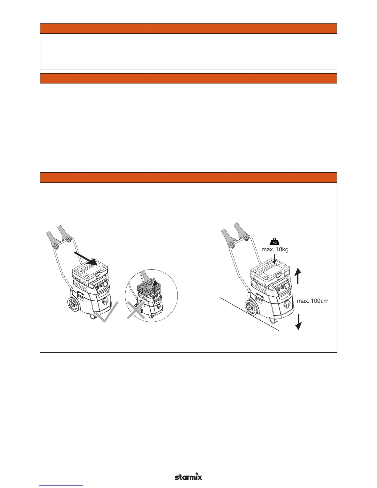 Μη στοιβάζετε τις εργαλειοθήκες ψηλότερα από 1,00 m (συνολικό ύψος μαζί με την ηλεκτρική σκούπα).