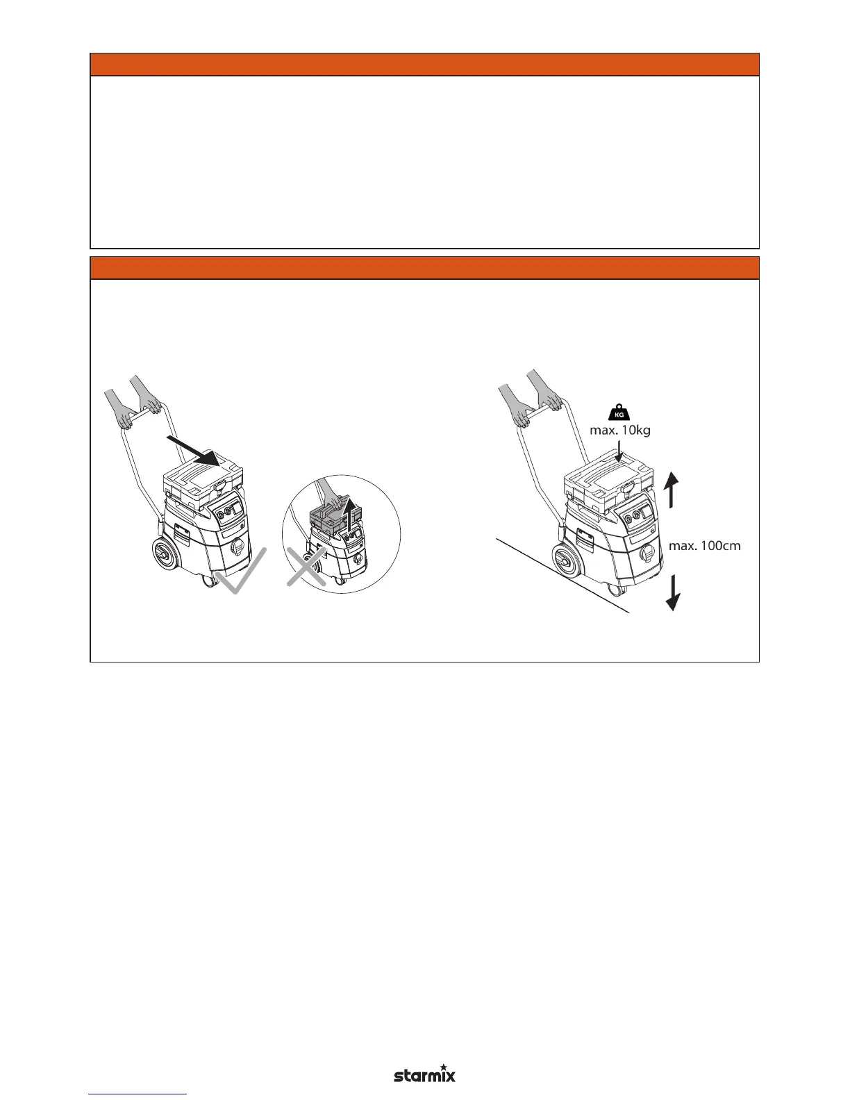 Ne emelje fel a porszívót a felszerelt szerszámosládára.