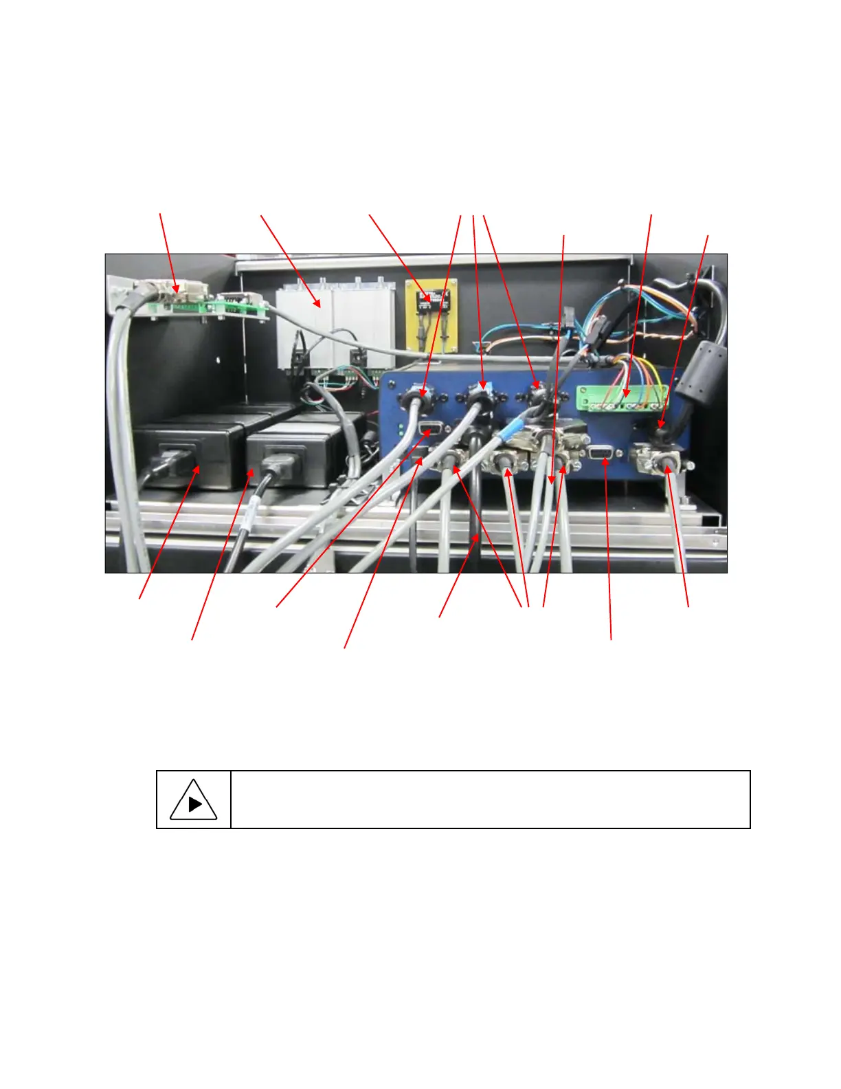 matching connectors on the equipment are labeled. Secure cables with cable ties