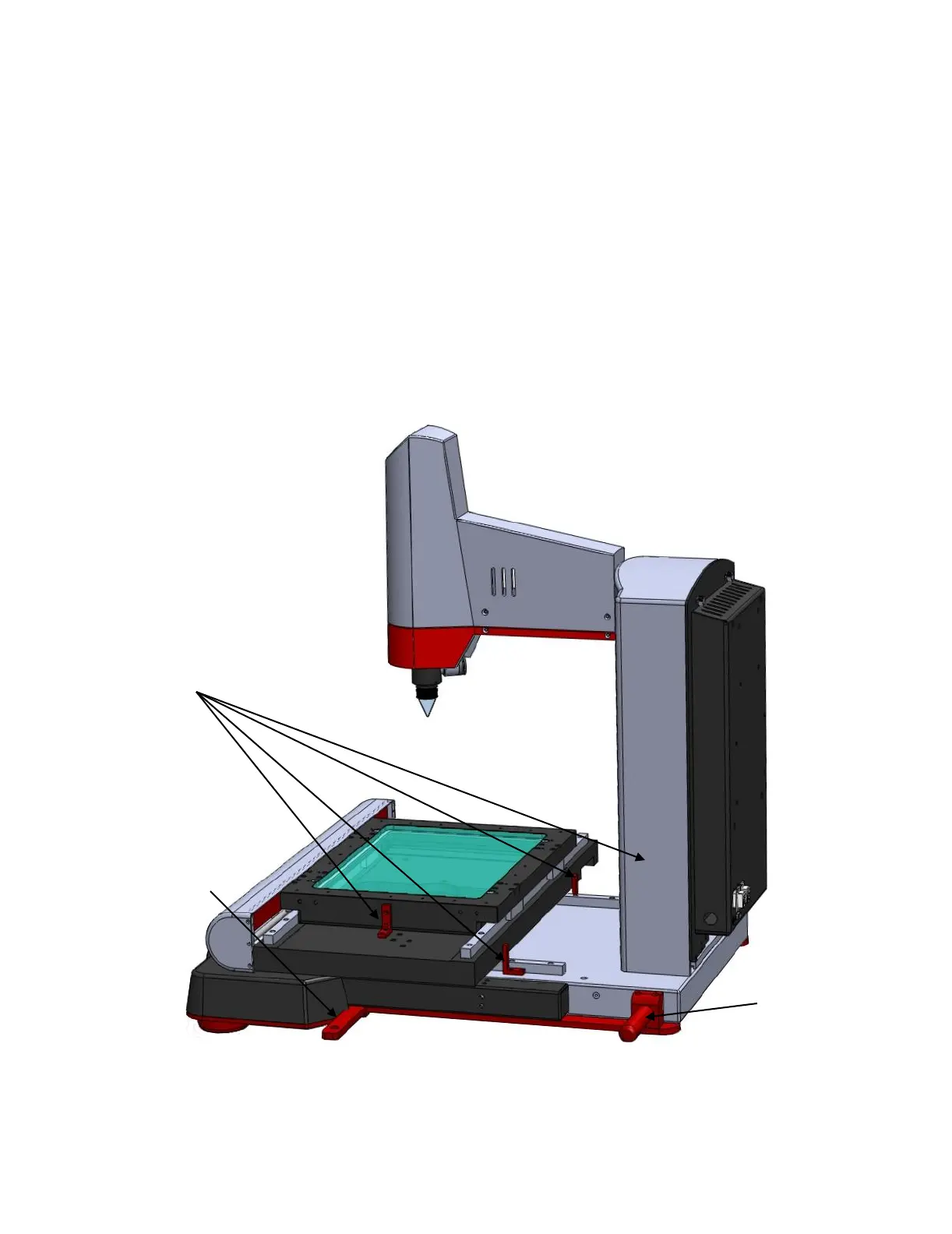 MVR300 metrology units are shipped with two red carrying handles near the back of the base.