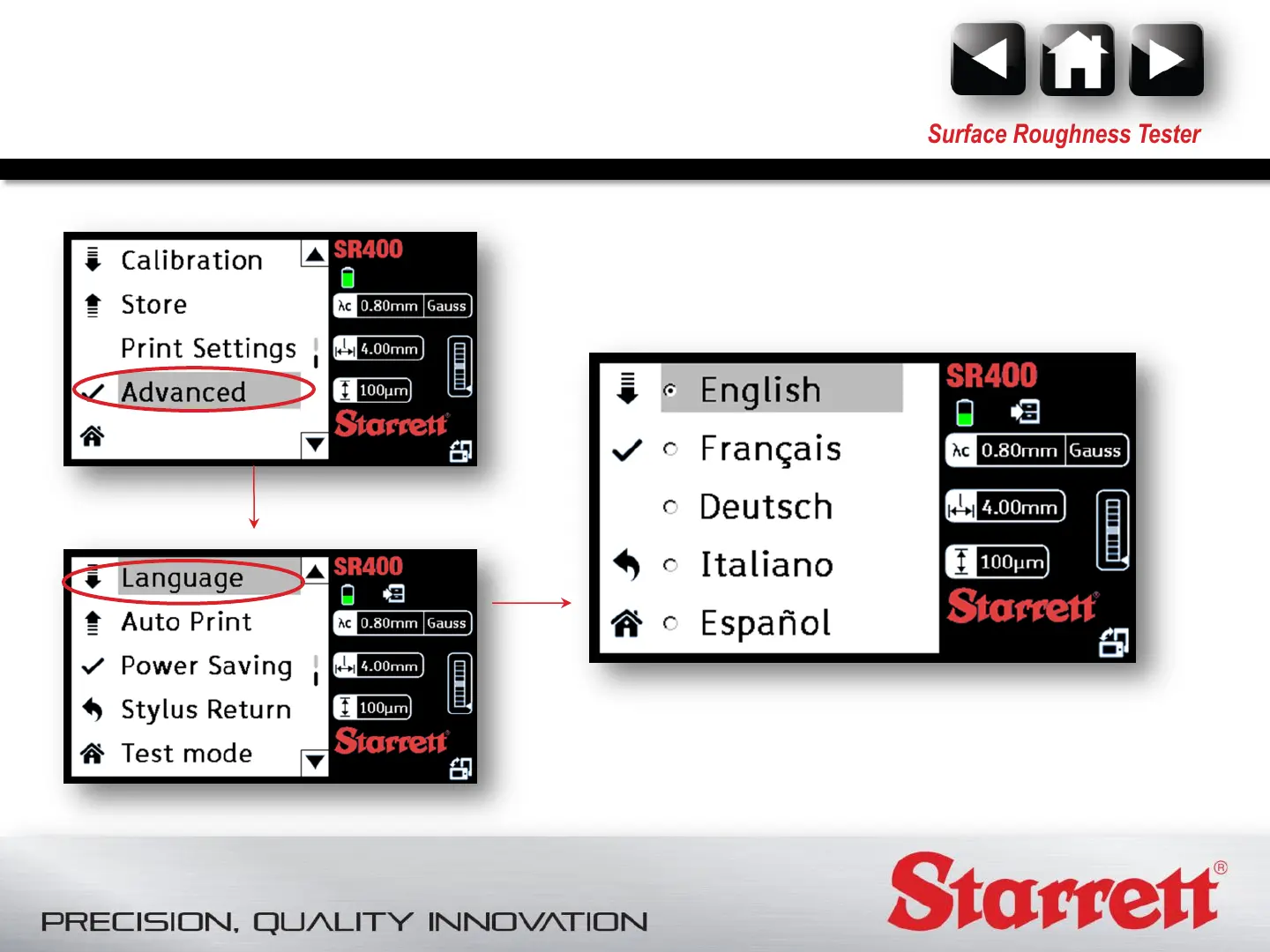 Starrett SR300 - Language