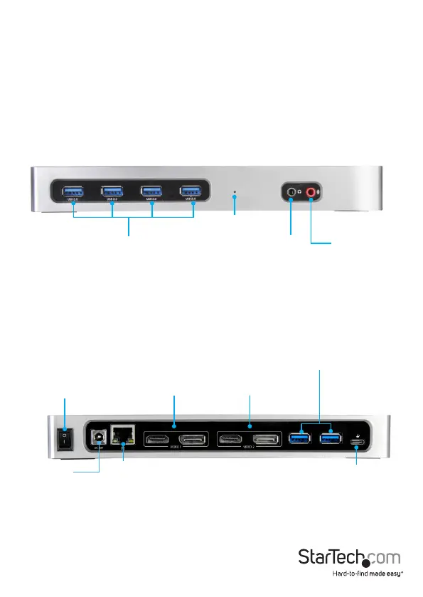 StarTech.com DK30A2DH - Product Diagram; Front View; Rear View